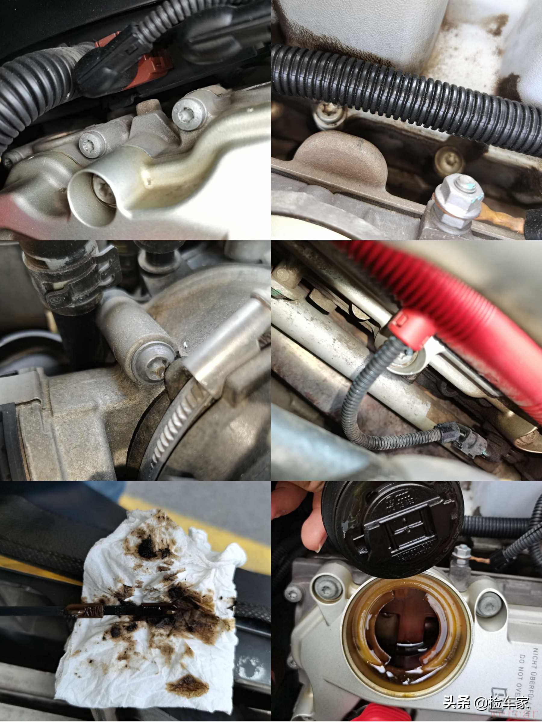 观察发动机,气门室盖、进排气歧管和其它主要附件均没有拆卸痕迹,发动机分解维修的嫌疑被排除。不过机油里面有黑色糊状一样的杂质,手摸着感受了一下,有点像棉花或者夏天树上飘落的棉絮,这就需要立即进行保养了。