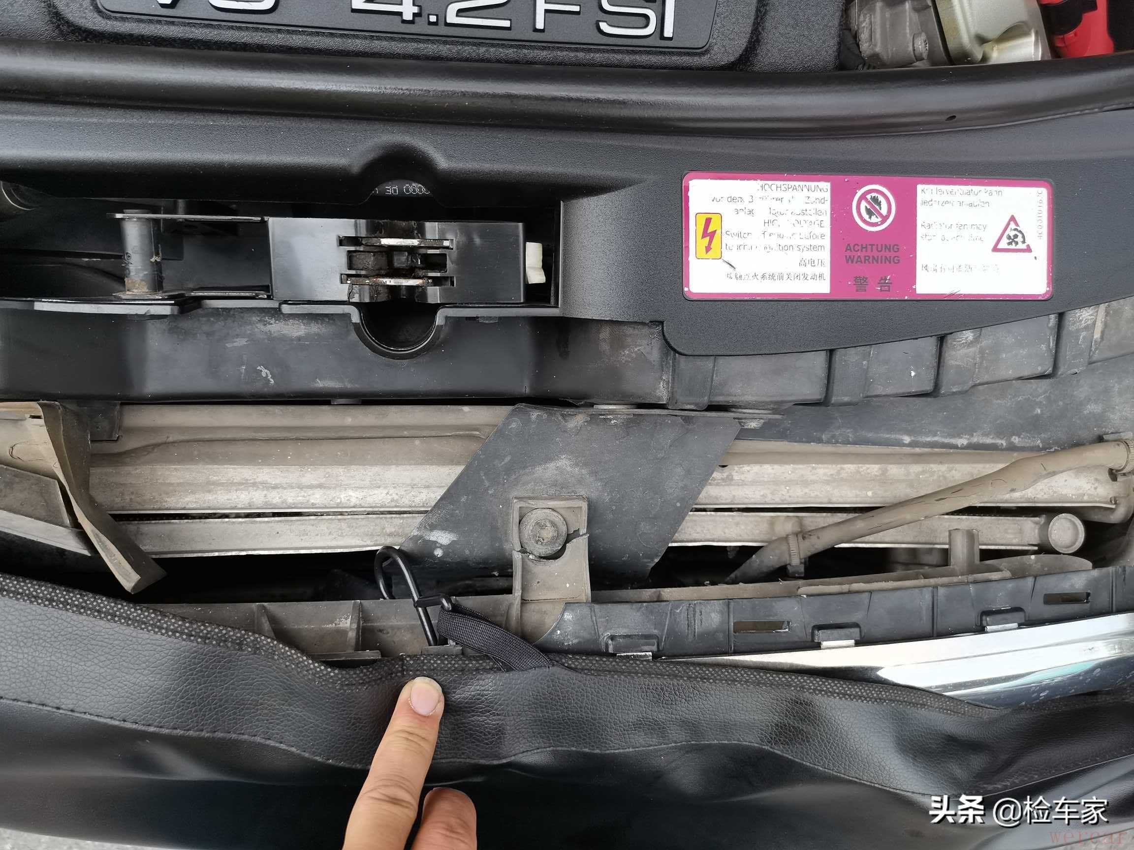 从照片上看,觉得发动机舱有点儿小,其实一点儿都不小。因为有一颗V8大心脏把机舱塞得满满的,引起了视觉上的错觉。这款4.2L的发动机在奥迪A8、A7、大众途锐、辉腾上都有使用,最大功率350马力,最大扭矩440牛米,性能稳定马力足,不过始终逃不掉烧机油的命运,前期如果保养不好,后期公里数上来之后也会出现很多问题,让人费心费力。