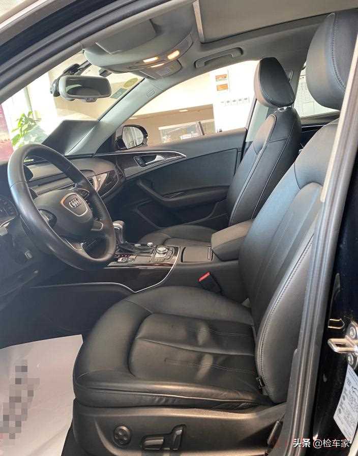 打开车门就可以闻到内饰有一股熟悉的奥迪味,不过内饰还是比较整洁的,主驾驶座椅皮有点稍微褶皱,但基本没什么明显的磨损,黑色的内饰就是比较耐脏不显旧。