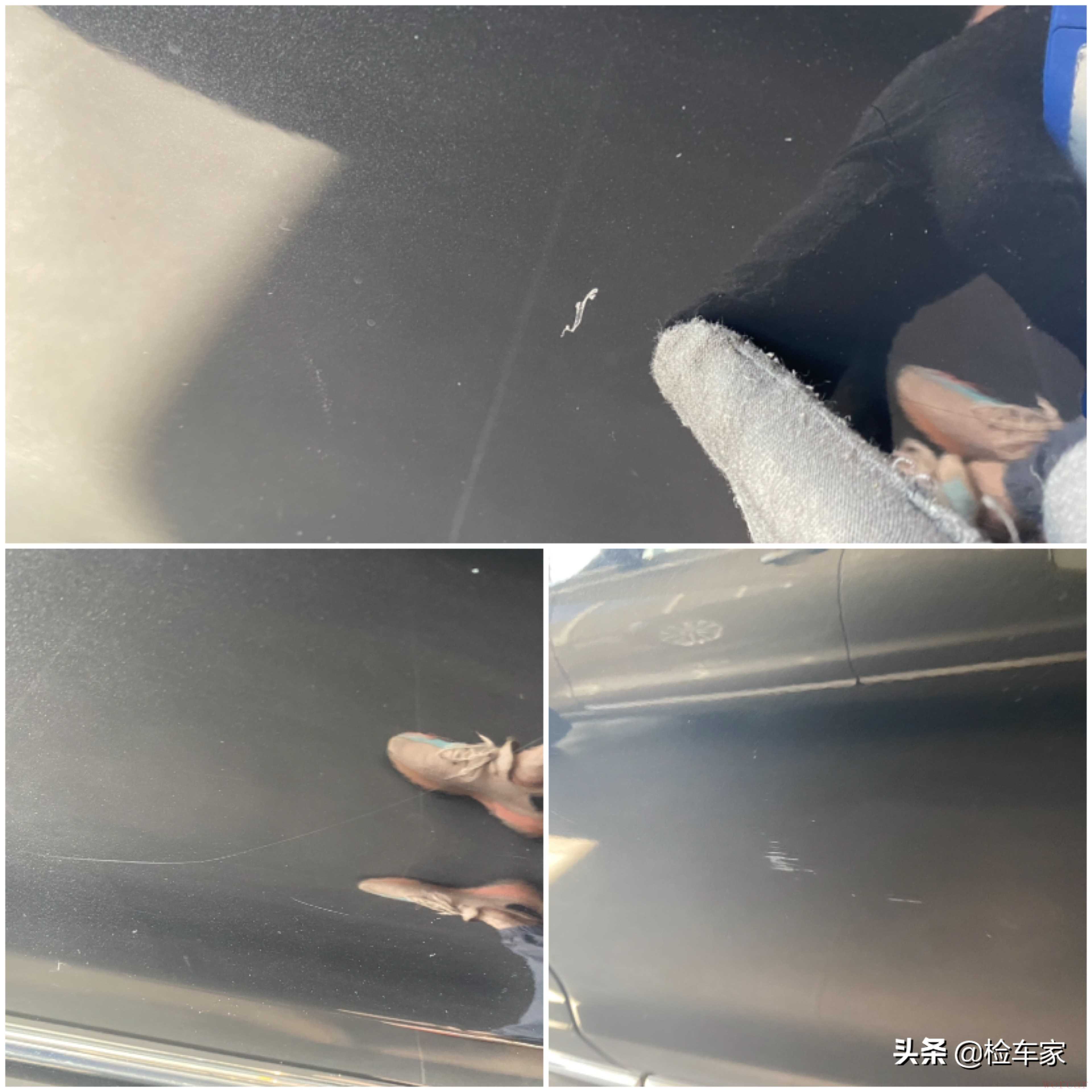 随后发现左后叶子板有小面积的钣金,可能是拐弯不注意小刮小蹭造成的,不算什么问题,这种情况在所难免。但是左后叶子板从170度角看上去漆面存在橘皮状,钣金喷漆修复工艺比较差。