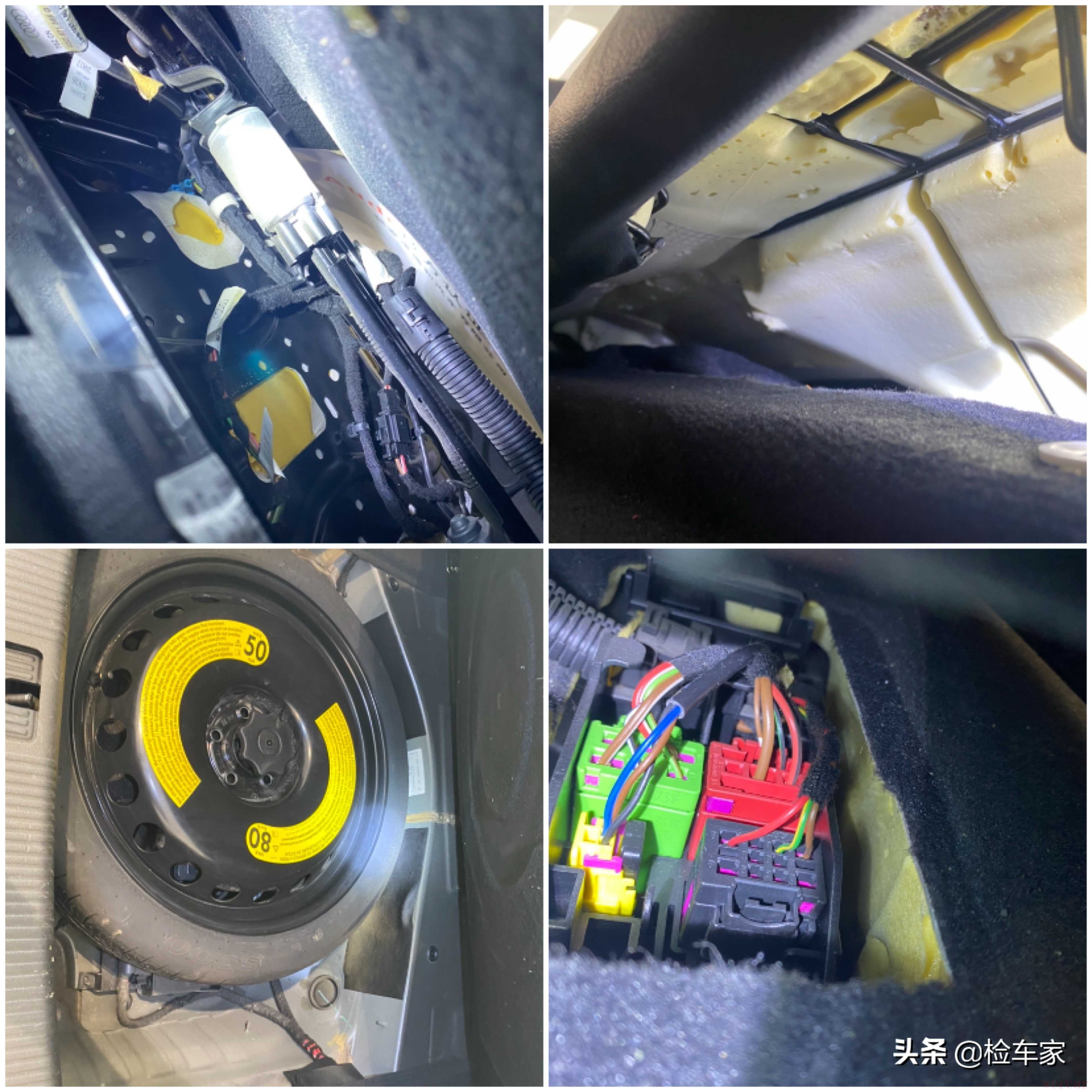接着我又打开后备箱盖,其实这个结果我早已预料到了,权当给大家分享一波验车小技巧:上面那张图是右后叶子板导水槽,也就是右后叶子板与车身连接的打胶痕迹明显与原车的不对称,胶痕是凸起来的很不自然,有鱼尾纹;下面那张图是左后叶子板导水槽,可以看到左侧原装的接口工艺完整有序打胶自然,是凹进去的形状,右侧是凸出来的而且胶痕皱皱巴巴不平顺。果然是没有对比就没有伤害啊。
