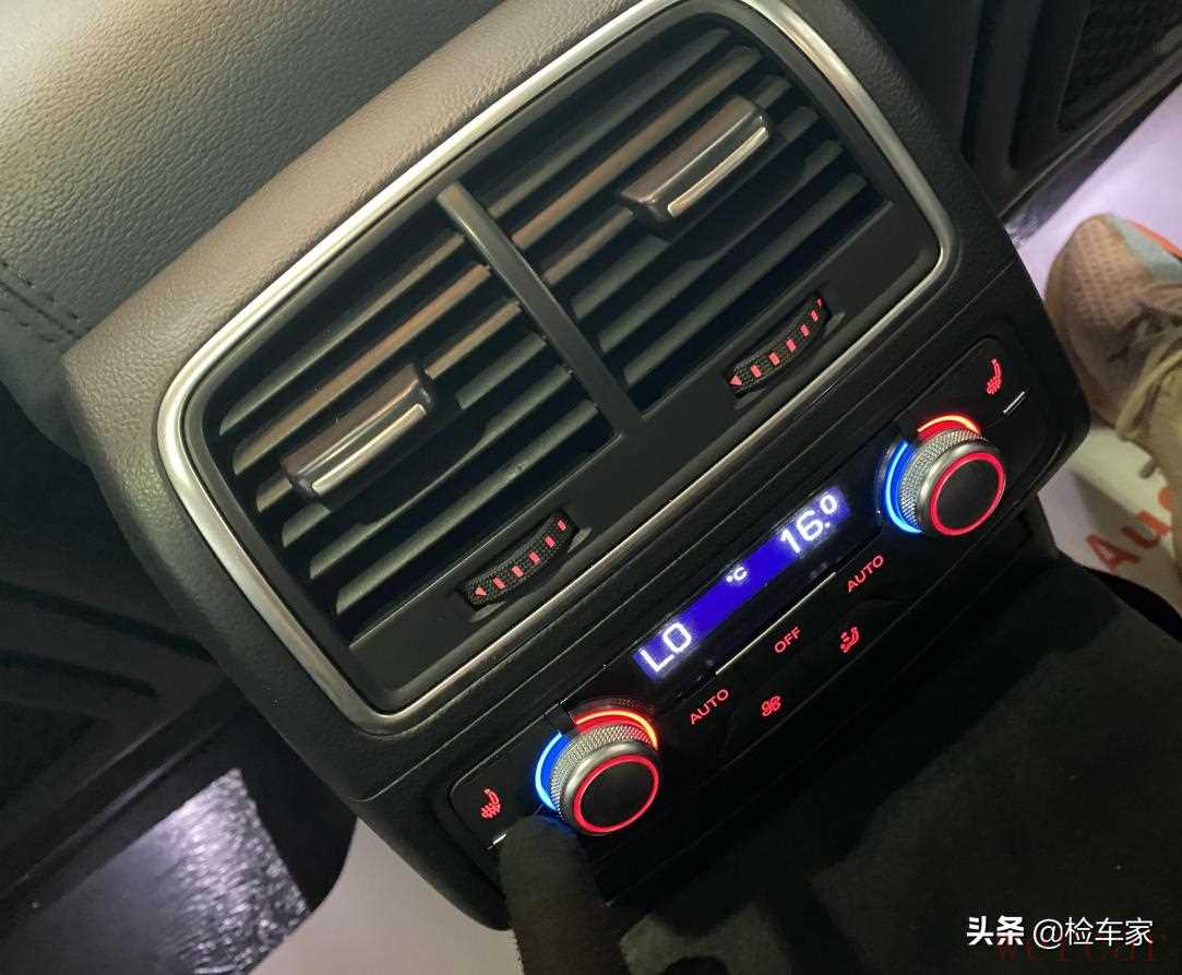 接着对全车功能按键进行检测,发现前部中控工作按键都正常,但是后排自动空调面板的座椅加热按键灯不亮,并且加热功能无法使用。后期可能需要进行修理,不过这款奥迪A6L的配置实在是高啊,下面来检查灯光。
