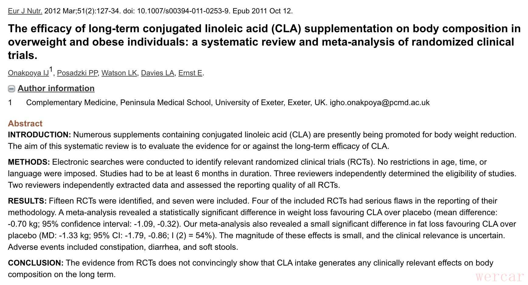 很多网友尝试过后还是有不错的减重效果原因也是基于这个,然而小编认为CLA能够增加减肥效果的关键是在于,能够提供饱腹感,这对于所有的脂肪酸也就是脂肪都有这个效果啊!那么干嘛要多买这个来达成呢?如果你能够达成营养金字塔的80%,做好基础的营养工作,你早就减肥成功了,依靠这些补剂效果真的微乎其微。鉴于很多网友私信来问CLA的效果,这边专门找来资料给大家分享,希望对大家有所帮助。