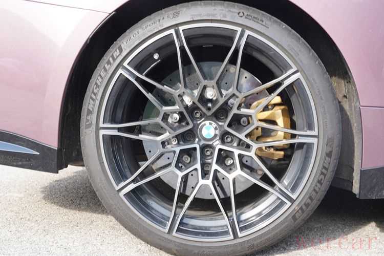 M4有一系列选装件,其中包括碳陶瓷卡钳。这种卡钳的外观是黄色,是专门用于高性能车的卡钳,而且往往只出现在顶级车型当中。