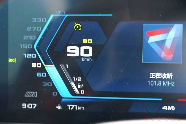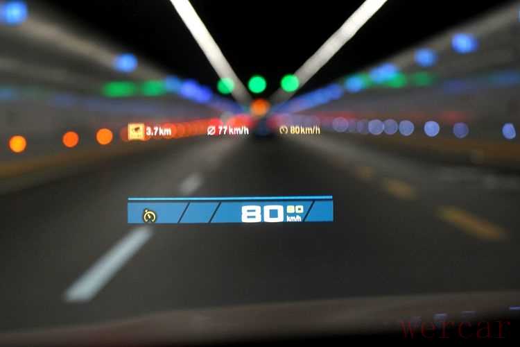 比较出彩儿的是抬头显示,显示区面积比较大,依靠不同颜色搭配,挺醒目,观看很容易。由于主要数据都能投在前风挡上,驾驶中,基本用不着低头看仪表屏。