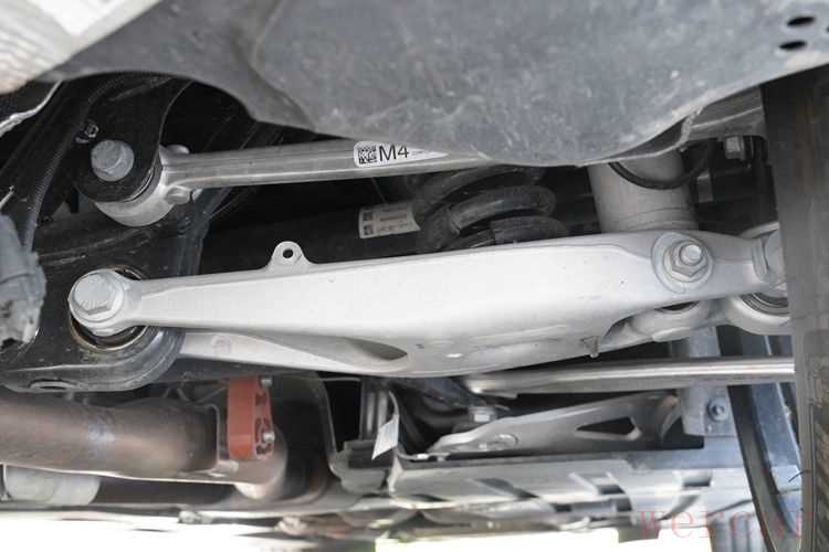 许多宝马车的机舱里,都有加强杆,大都是1根或2根,这辆M4是3根,从而使左右减振器与前部,形成一个三角形,牢固程度,可想而知。