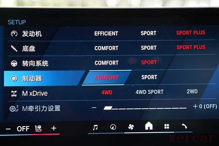 在中控屏的首页,有个很醒目的设置区,驾驶者可以根据自己的喜好,分别对动力、悬架、方向和制动,进行单独设定。