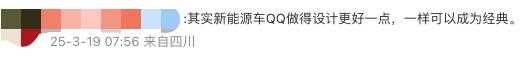 "怀旧派:" “哟!这不是我小时候/大学里开过的那辆 QQ 吗?虽然大了点,但感觉还是那个味儿!” “经典永不过时!这前脸,这线条,瞬间把我拉回 2000 年代!” “终于等到了!还是你熟悉的样子!”