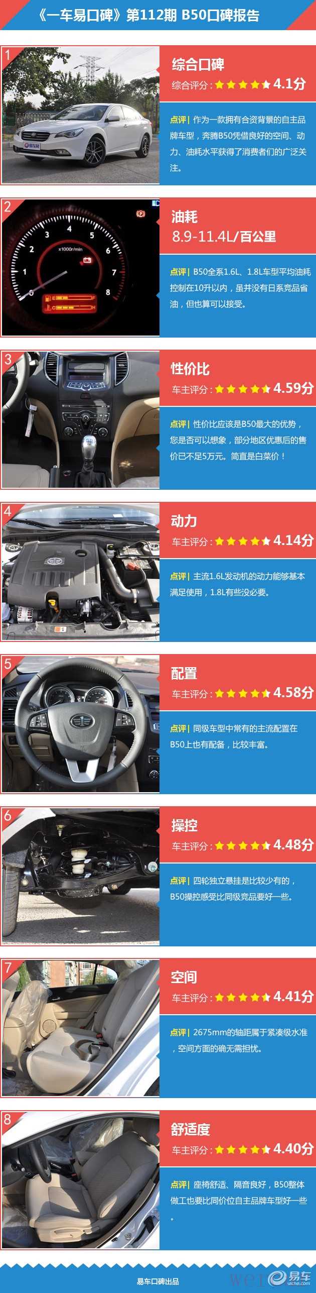 1. "空间表现:" 作为一款紧凑型轿车,B50的车内空间(尤其是后排和后备箱)通常能满足家庭日常使用,对于城市通勤和短途旅行足够。