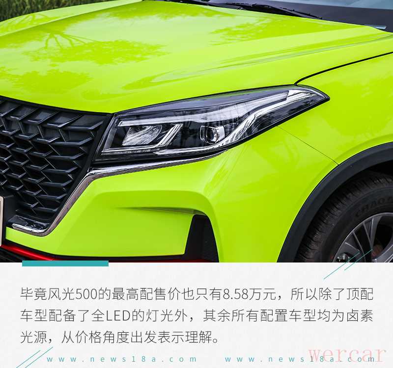 在几年前,别说8万元左右了,就算是10万元这个价位区间都是自主品牌小型SUV的领域。如今谁曾想,10万元以内就已经出现了紧凑型SUV,并且售价还仅仅只有6.18万-8.58万元,它就是我们今天的主角2022款的风光500。最高配售价只有8.58万元的风光500,在产品力上表现是否会缩水?抱着这样的疑惑,我们开始今天的试驾。(注:今天的试驾车颜色仅为厂商特定的广告色,市面上并没有该颜色车型售卖)