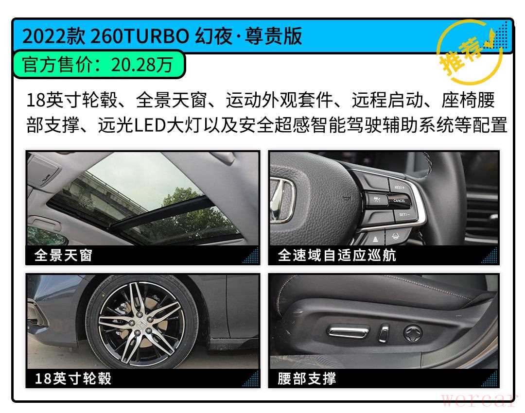 因此,买买君更推荐幻夜·尊贵版,相比豪华版虽贵了一万元,但多了18英寸轮毂,对于注重颜值的消费者,这非常重要,同时还多了Honda SENSING安全超感智能驾驶辅助系统,像车道偏离预警、车道保持辅助、主动刹车、驾驶疲劳提醒和全速域自适应巡航等,以及全景天窗、运动外观套件、远程启动、座椅腰部支撑、远光LED大灯等配置,绝对是超级划算。