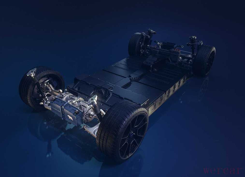 其二是搭载在GMC Hummer EV上的纯电的系统。新车定位为大型SUV,造型非常硬核,在北美市场上市后便收获9万个订单,它配备了三电机e4WD驱动系统(包含扭矩矢量控制),三电机最大功率1014马力,峰值扭矩1085牛·米,百公里加速时间仅需3秒。