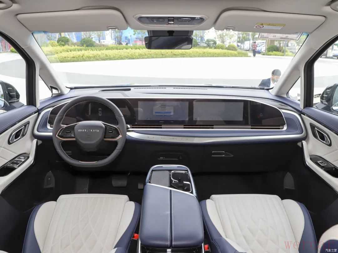 横贯式屏幕的设计在当下不算少见,但科技感与豪华感依旧惊艳,新车内饰的三联屏采用高通8155和联发科8666高性能双芯互通技术,让我们十分期待车机系统的实际使用表现。此外,MIFA 9采用独立座椅设计,支持全车6座电动调节,靠背、腿托、前后移动全部实现电动化,通风、加热、按摩等功能也全面配备。