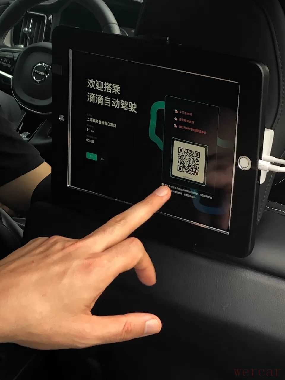 4)后排座位前多了块屏幕。上车后,得系好安全带、在屏幕上扫码,再次按键确认出发。车辆才会启动;