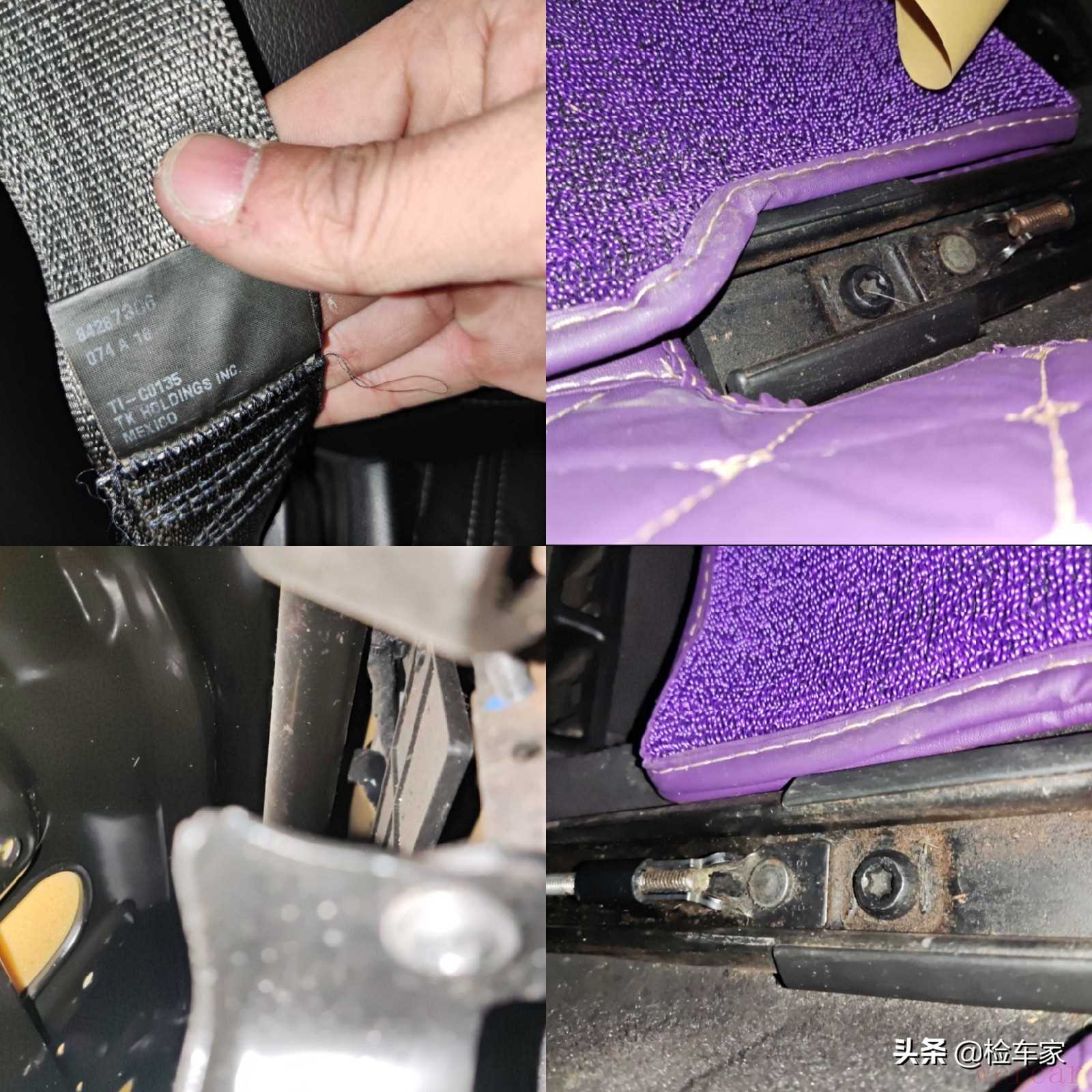 并且座椅滑轨和骨架也没有拆卸、水泡的痕迹;安全带的制造日期在车辆出厂周期范围内,而且与编码保持一致;金属卡扣内无泥沙污渍生锈;固定螺丝无拧动痕迹,确认为原厂安全带。可以排除车辆存在水泡嫌疑。