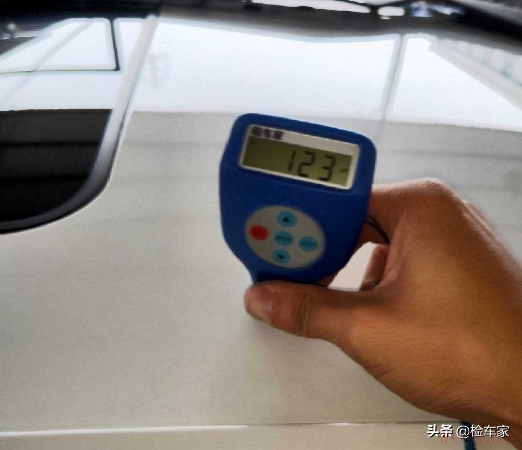 还是先在车顶取一个漆面的基准数值做参考,方便我们判断全车的整体漆面情况,因为车顶做漆的几率很小,但是不排除有做漆的可能,如果有做漆的话就只能综合来判断了。