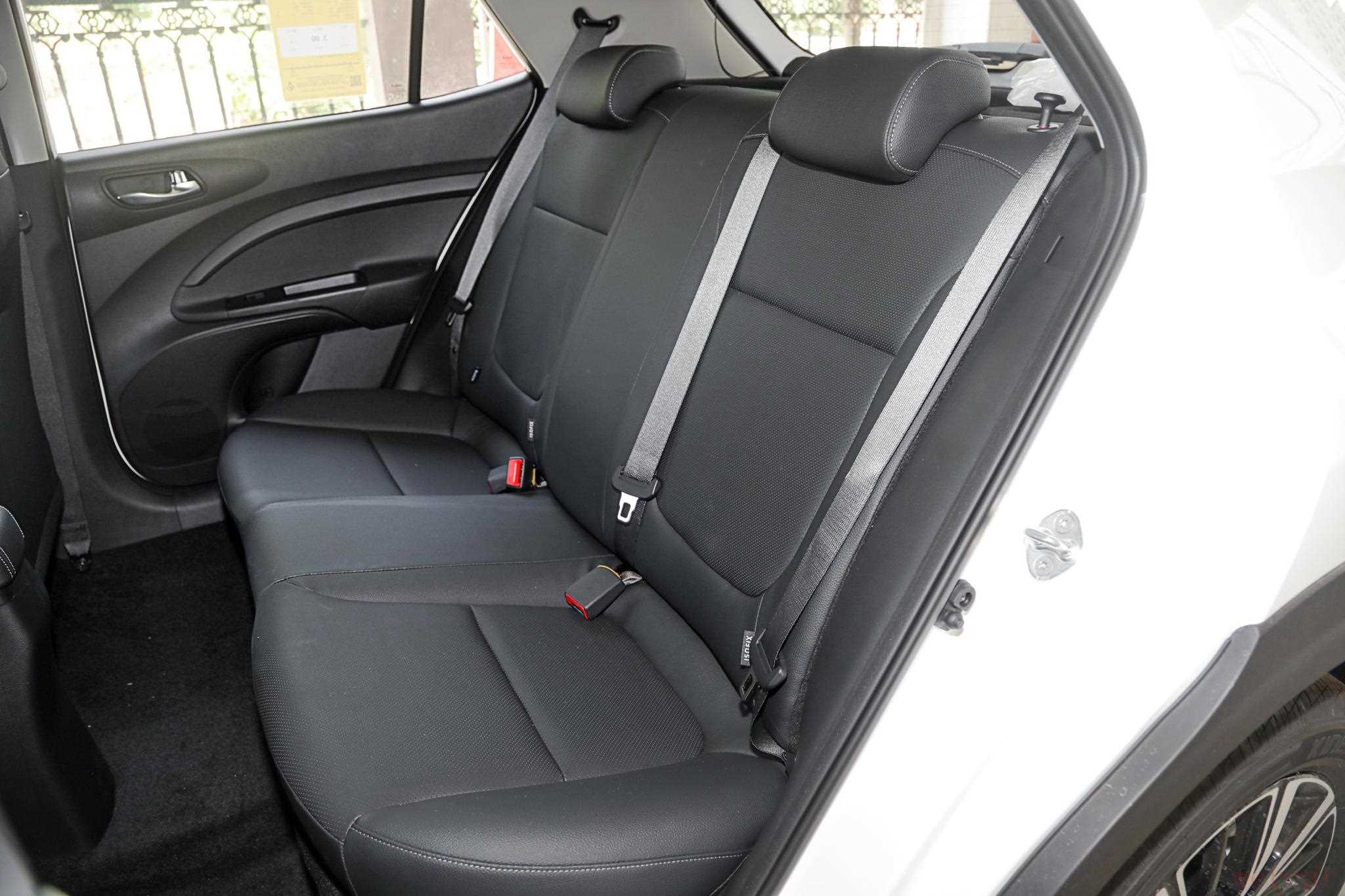 整车长宽高分别为4100*1735*1533mm,轴距为2570mm,身高1.73米的体验者在前排调整后坐姿,再进入到后排,此时头顶空间有着3指多点的富余,腿部空间有着1拳多点的距离,并排坐满3个成年人的话,横向空间就会拥挤,而且后备厢比较小,但毕竟尺寸和级别在这摆着呢,咱们对空间的要求不能太高。