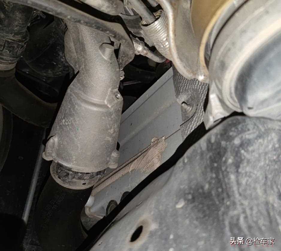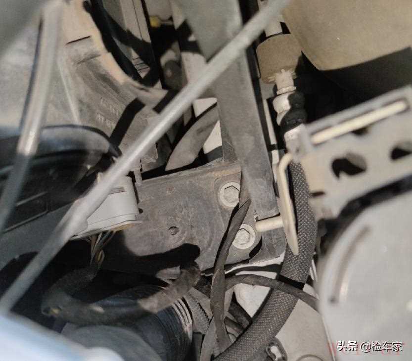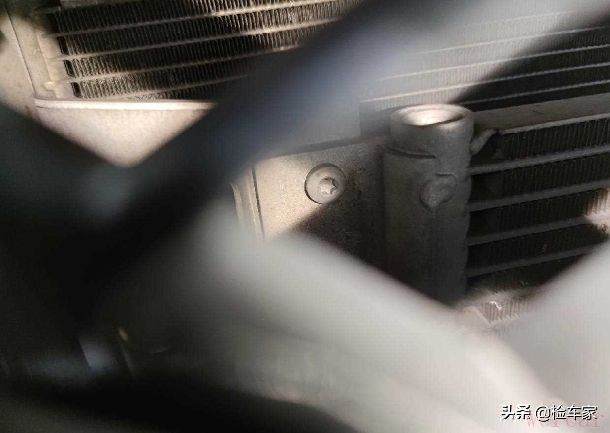 既然前面有修复,所以内部要好好检测一下,可以看到水箱框架和周边附件都没有拆卸痕迹,所以前部的修复应该是单纯的小剐蹭而已,问题不大。
