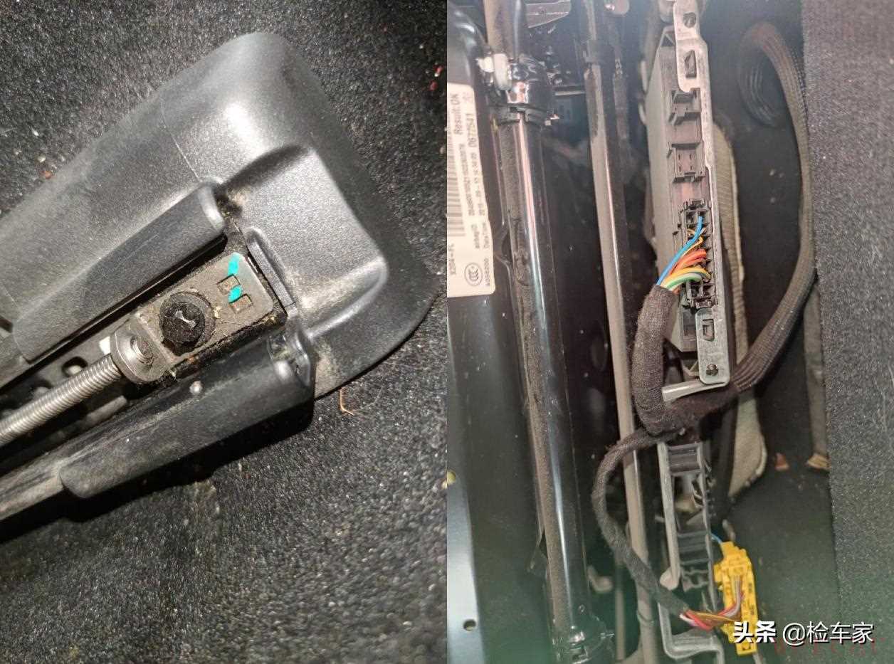 座椅滑轨固定螺丝无拆卸,座椅下部线束内部无泥沙生锈发霉,没有发现水泡的情况。
