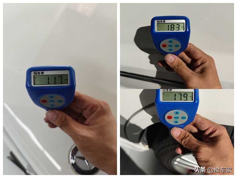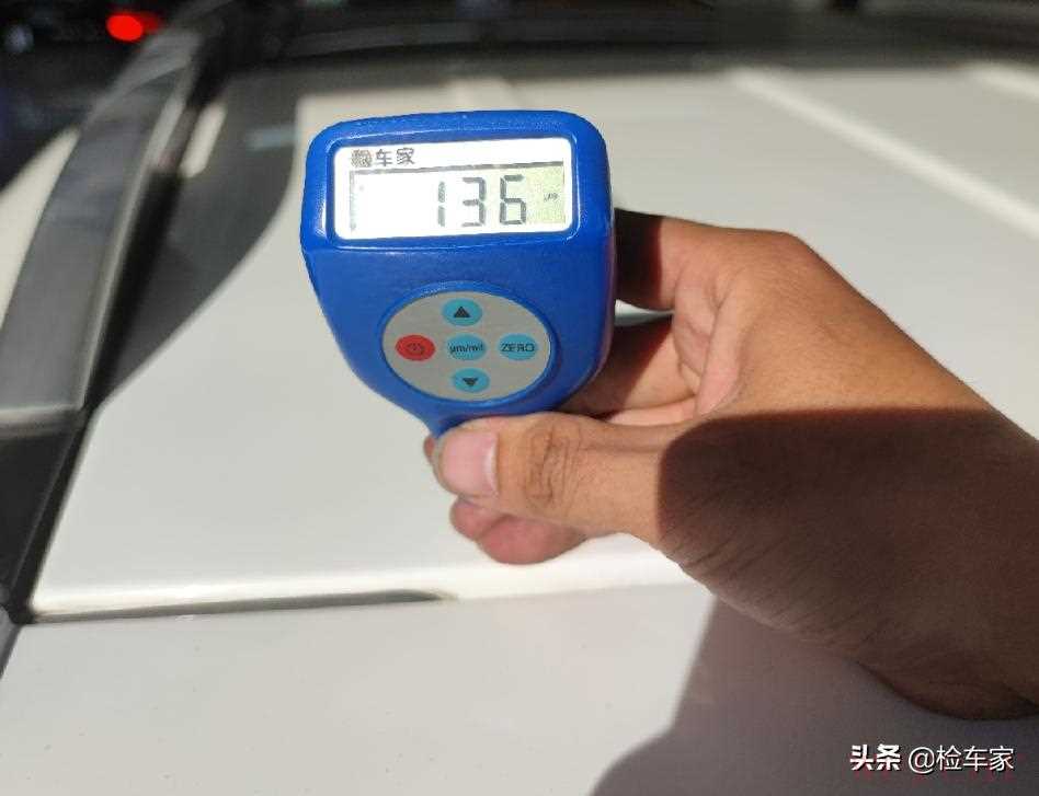 车顶看了一圈,没有发现喷漆的痕迹,而且用仪器测量数值也正常,那这个数值就可作为整车车漆的基准值参考。