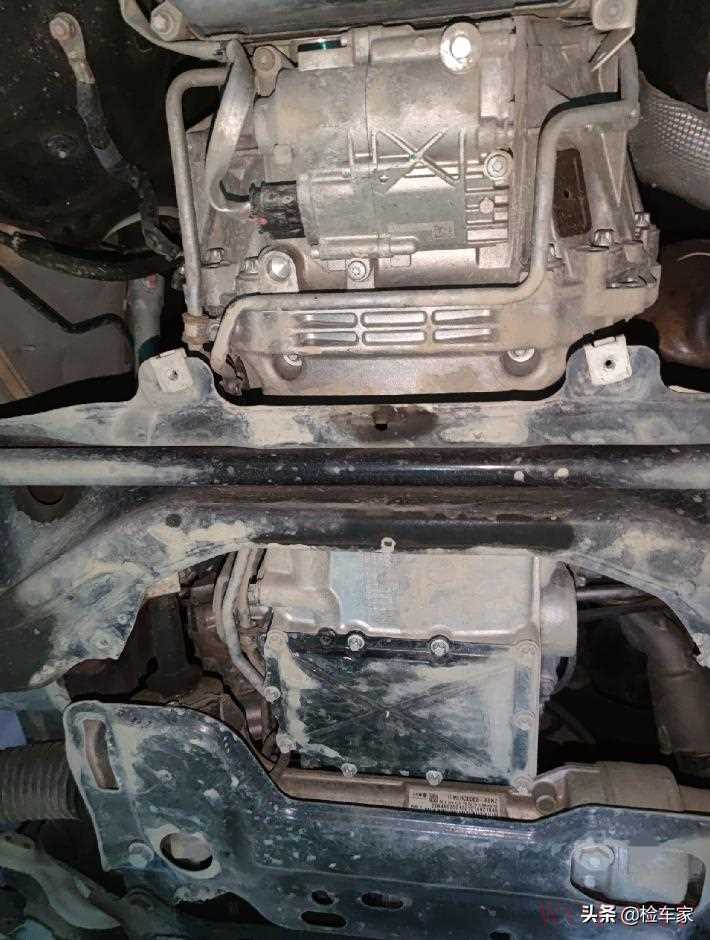底盘部分首先还是看一下发动机变速箱,一眼看过去,没有明显的渗油漏油痕迹,还不错。