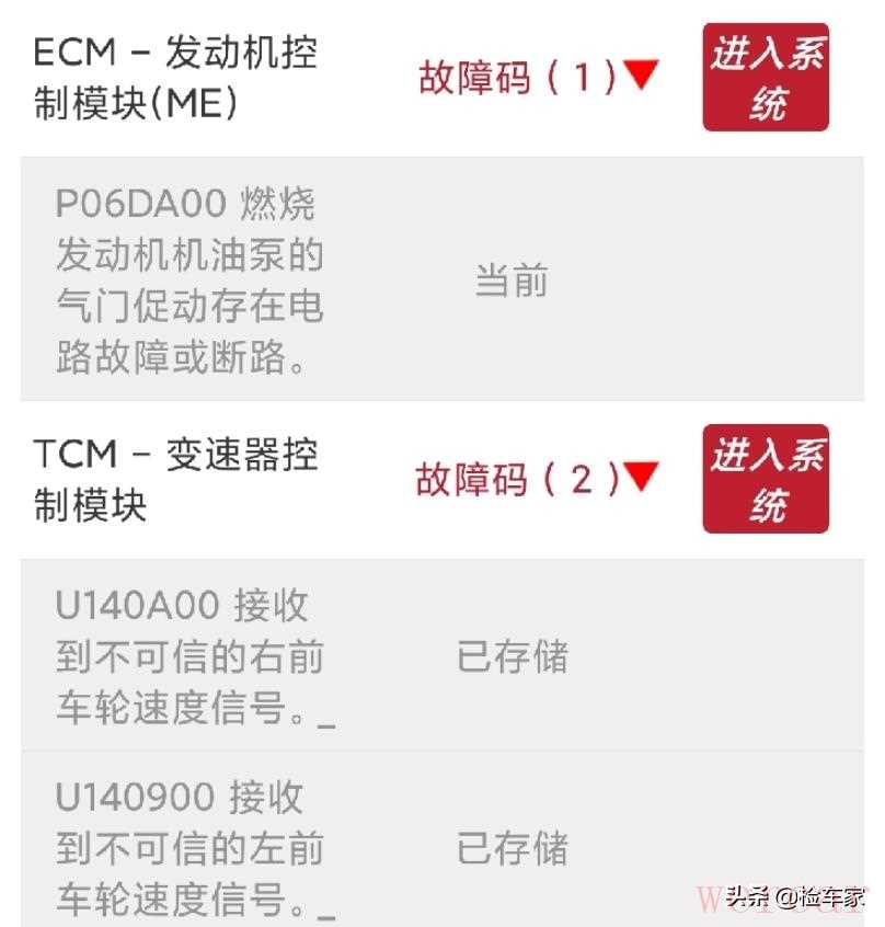 接下来我用行车电脑OBD读取了车辆电脑内部的故障码,发现发动机变速箱都有故障码存在,故障码这个东西,问题可大可小,具体是线路问题还是零件有问题,需要仔细地排查。不过通过之前的检查,并没有发现有什么大问题或者存在疑问的地方,估计是加装线路导致的,但是后期还是要去检修一下的,小心驶得万年船嘛。