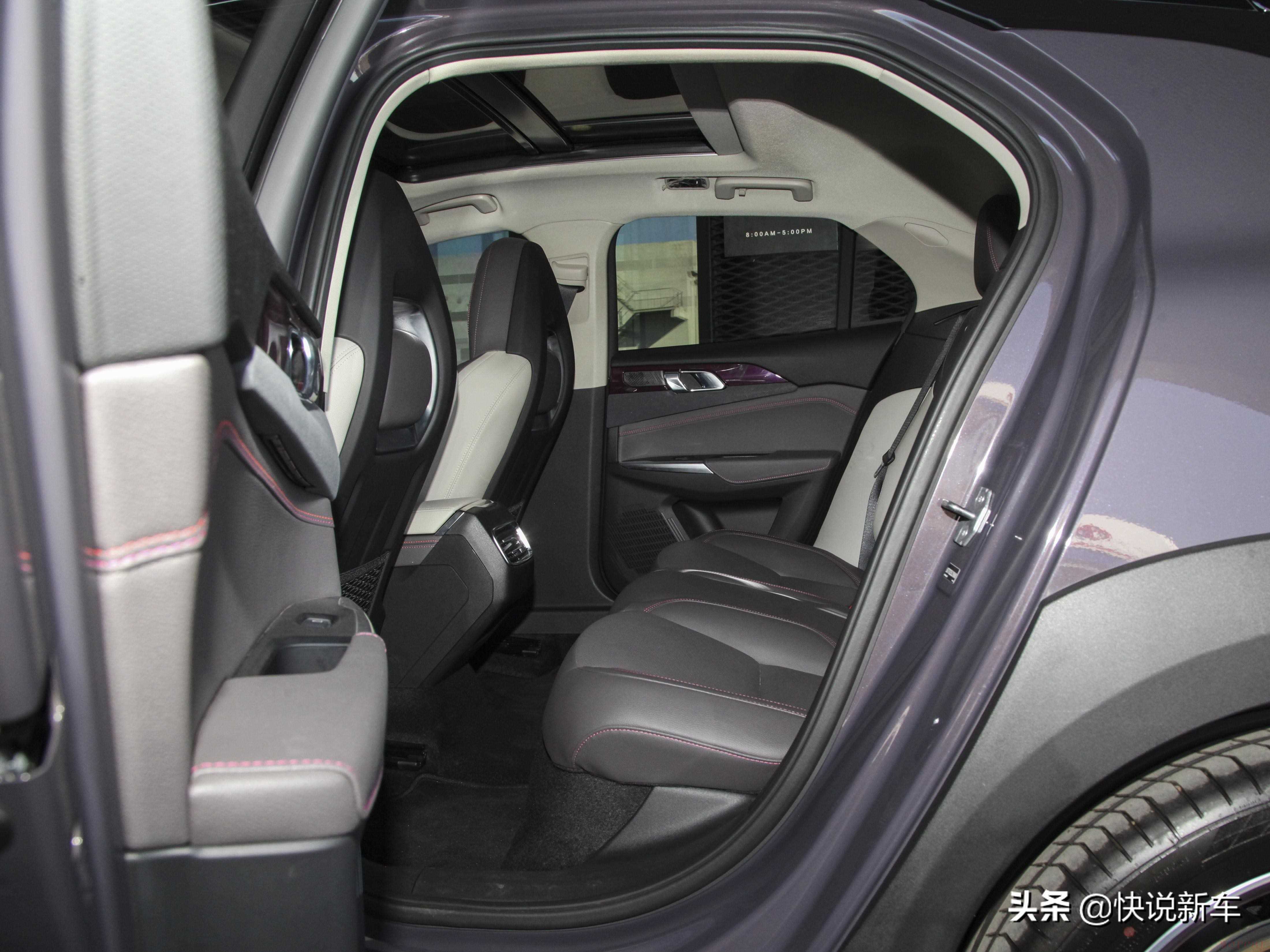 领克02的后排空间比较规矩,而且乘坐空间也比较充足,应付日常用到的家庭需求是没有问题的。另外,这款车还配备了后排头部气囊、后排侧隐私玻璃、后座出风口。