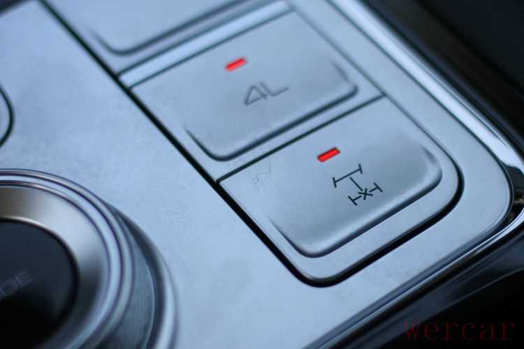 4L按键的下面,是差速锁的控制键。据介绍,该车的前、后桥配备了电控牙嵌式差速锁,意味着发动机与4个车轮可以保持硬连接,也就是俗称的“三把锁”,这是重度越野的必备。