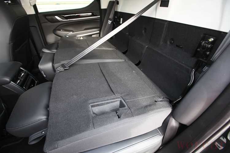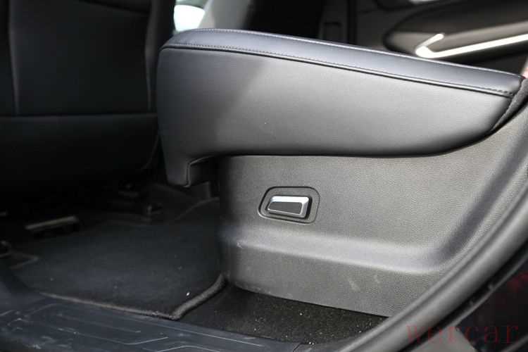 左右座椅的侧面,有个电门,用于控制座椅的电动前移,行程60毫米。每当座椅前移时,椅背随之后仰,最大角度接近33度,令乘坐更为舒适。此时的后排座,如同一张宽大的沙发,很享受,这便是我想起友人的那辆皮卡的原因。