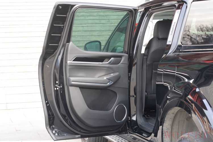 由于门缝后移,车窗旁边增加了一大块儿,车门变得很宽,也显得很厚实,车门内饰板的做工与前门相同,依旧很精致。