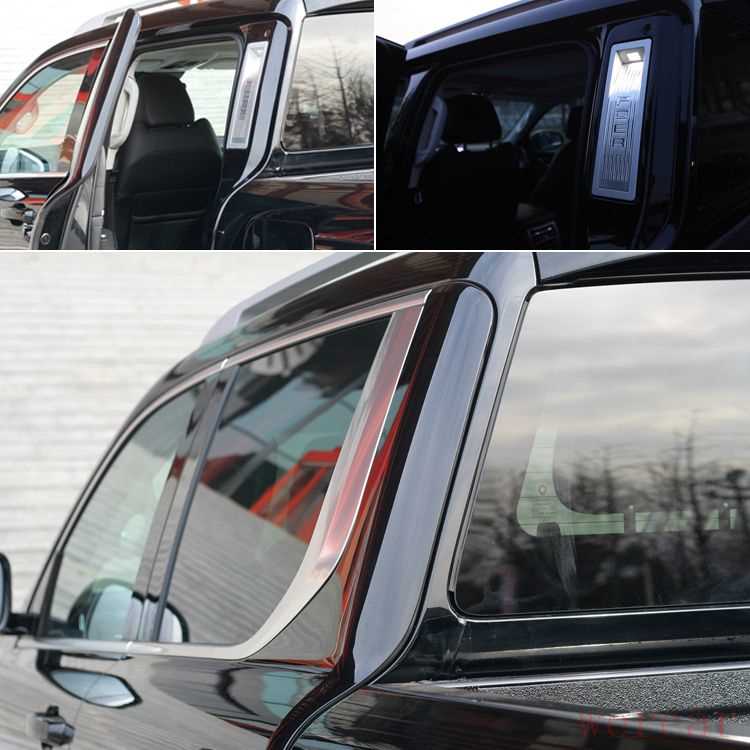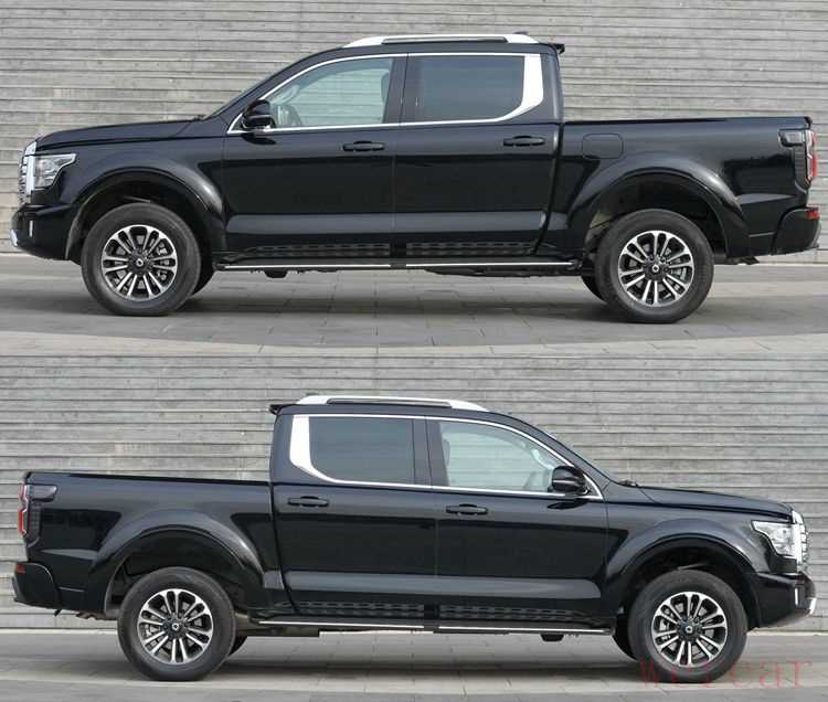从侧面看,长度与高度处理的很匀称,避免了某些皮卡过于“纤细”的不良印象。粗大的轮眉、银色车顶架、后车门上带有变化的镀铬宽条,为侧面造型加分不少。具体尺寸是,长、宽、高分别为5440×1991×1924毫米,轴距3350毫米。