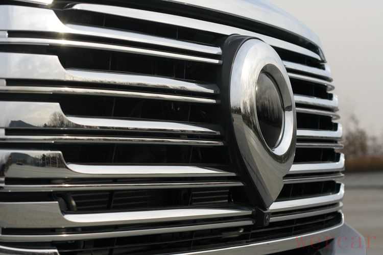 其中,前脸最具代表性。今年4月我曾试驾过金刚炮,那辆车的前脸也特威武,但相比之下,山海炮更有设计感。大的有些夸张的中网、粗壮的镀铬横幅、豹眼造型的前照灯,以及厚实的保险杠和银色下护板,搭配的相当出彩,给人一种很强势的力量感、沉稳感。