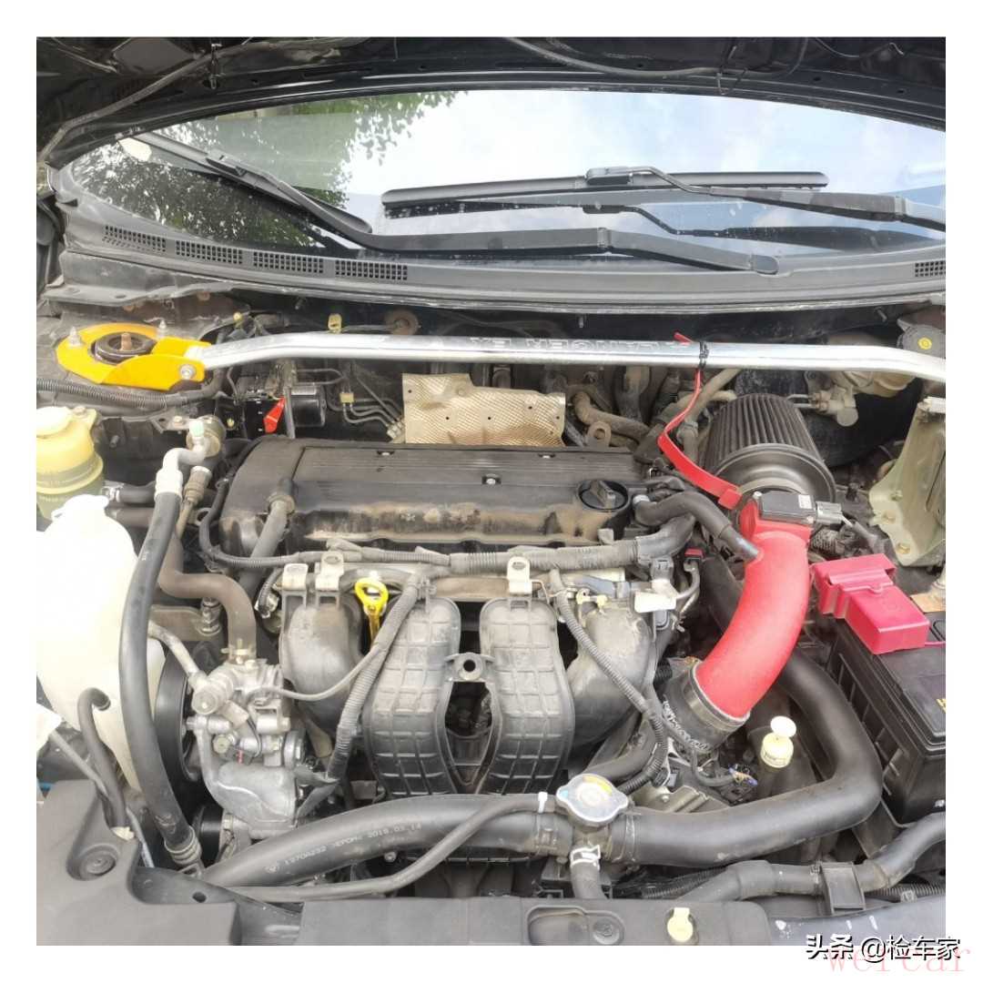 外观检测下来粉丝小哥依然热情不减,表示外观全部喷漆了反而是件好事,只要没伤到骨架自己都能接受,那接着咱们就来看一下发动机和变速箱的工况。打开机盖明显的看到改装了进气,一般这种改装了进气的车发动机电脑板都有过刷程序,如果是车商来收这种二手车一般都会把价格压得很低。