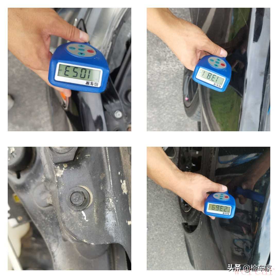 回头看两边翼子板的钣金数值不低啊,再加上钣金的位置很接近两侧大灯,所以说前嘴一套应该是有过更换的,卖家说只是单纯改的套件,小宝认为没有说出全部事实,至少有过轻微的碰撞事故吧。