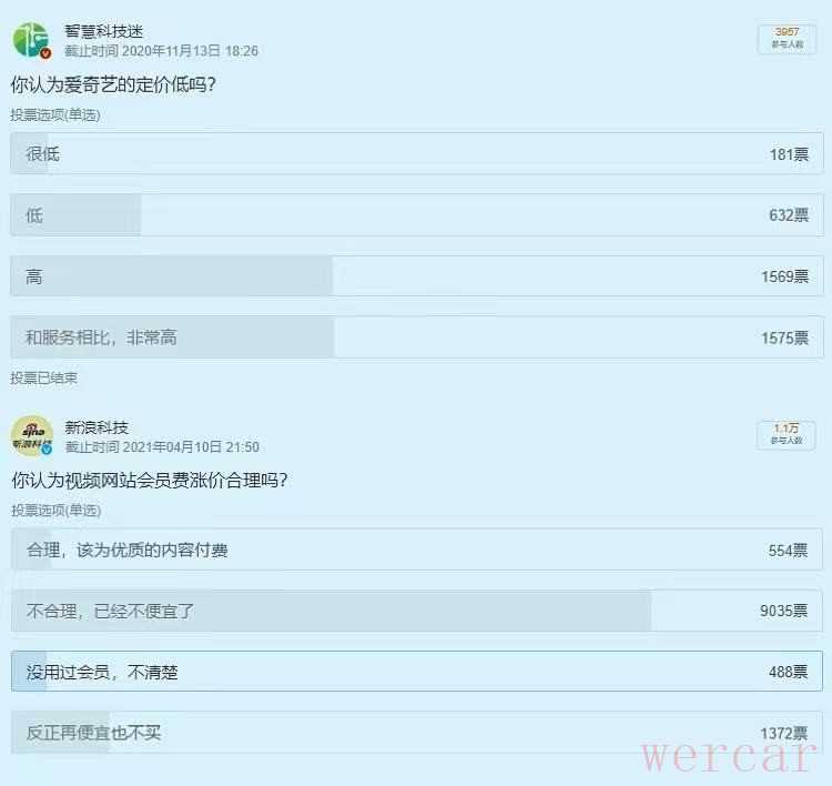 继爱奇艺后,腾讯视频VIP也涨了。反观大洋彼岸的奈飞近年来前前后后无情涨价六次,爱腾在会员经济深耕近10载首次涨价,算得上是“业界良心”。奈飞的涨价之路似乎已被用户接受,然而在微博话题#爱奇艺涨价#和#腾讯视频VIP会员涨价#之下,分别有两个投票,结果显而易见,用户白眼都翻上天了。