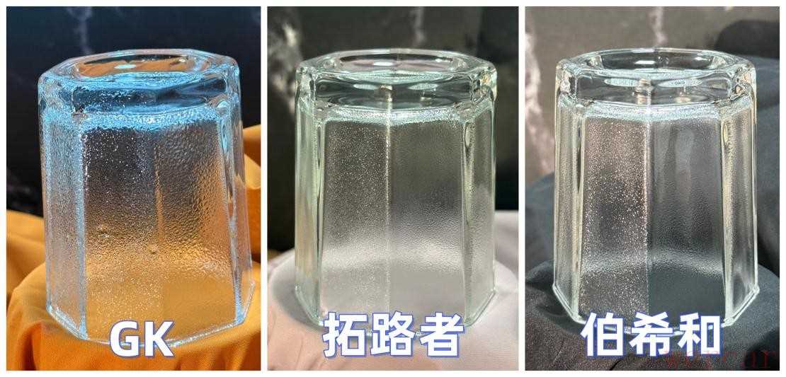 维度二、透湿性接着进入到透湿性能维度的实测环节,围绕透湿性能来解析Gakior、拓路者、伯希和冲锋衣怎么样,我们通过用冲锋衣盖住装有热水的玻璃杯,再在另外一侧对应位置盖上一个冷玻璃杯的方式来测试各款产品的透湿性,对比玻璃杯当中出现水珠的数量和速度快慢,实测结果如下: