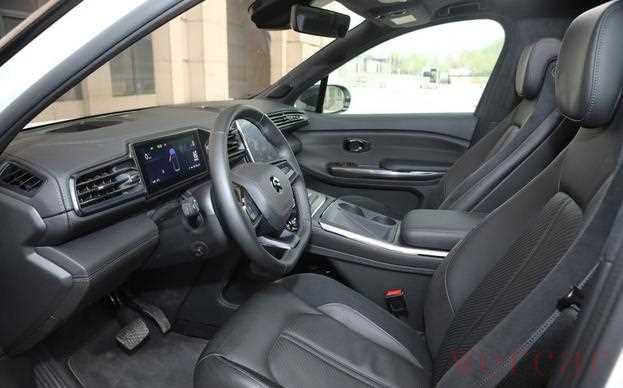 11.3英寸高分辨率中控大屏色彩艳丽,绝大多数功能和设置全部集成于此。贯穿式出风口将中控台连接成一个整体。机械式的按键被触控的形式取代,大幅精简的按键也使得集控区异常的整洁。不过后排乘客就感受不到那么强的科技感了,出风口仍然是传统的机械式,后排中央扶手也比较简单。