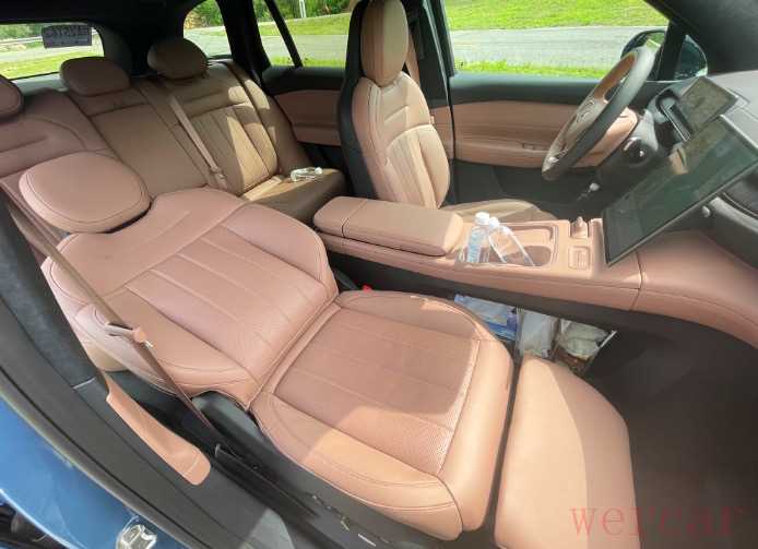 内饰采用环抱式设计。通过简约的线条、光影的交汇以及创新亲肤材质的运用,营造出舒适且温馨的移动起居室。