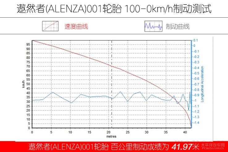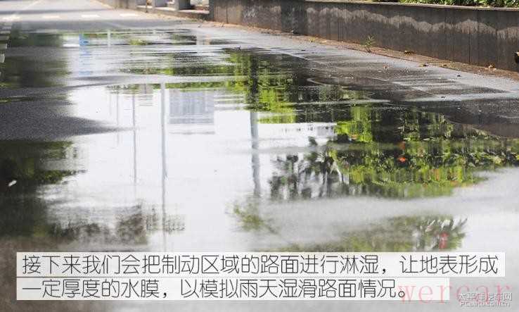 在湿地路面全力制动时,能感觉到ABS介入比较明显,不过主观感觉轮胎还是能抓住地面的,不过制动距离没有想象中长,表现还是有点出乎意料的,最终实测成绩为41.97米,只比干地多了近2米,这个表现比较出色。