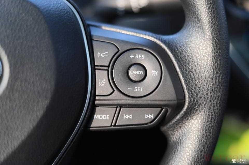 通过多功能方向盘右侧的按键设定自适应巡航,CANCEL键右侧的便是巡航开启键。