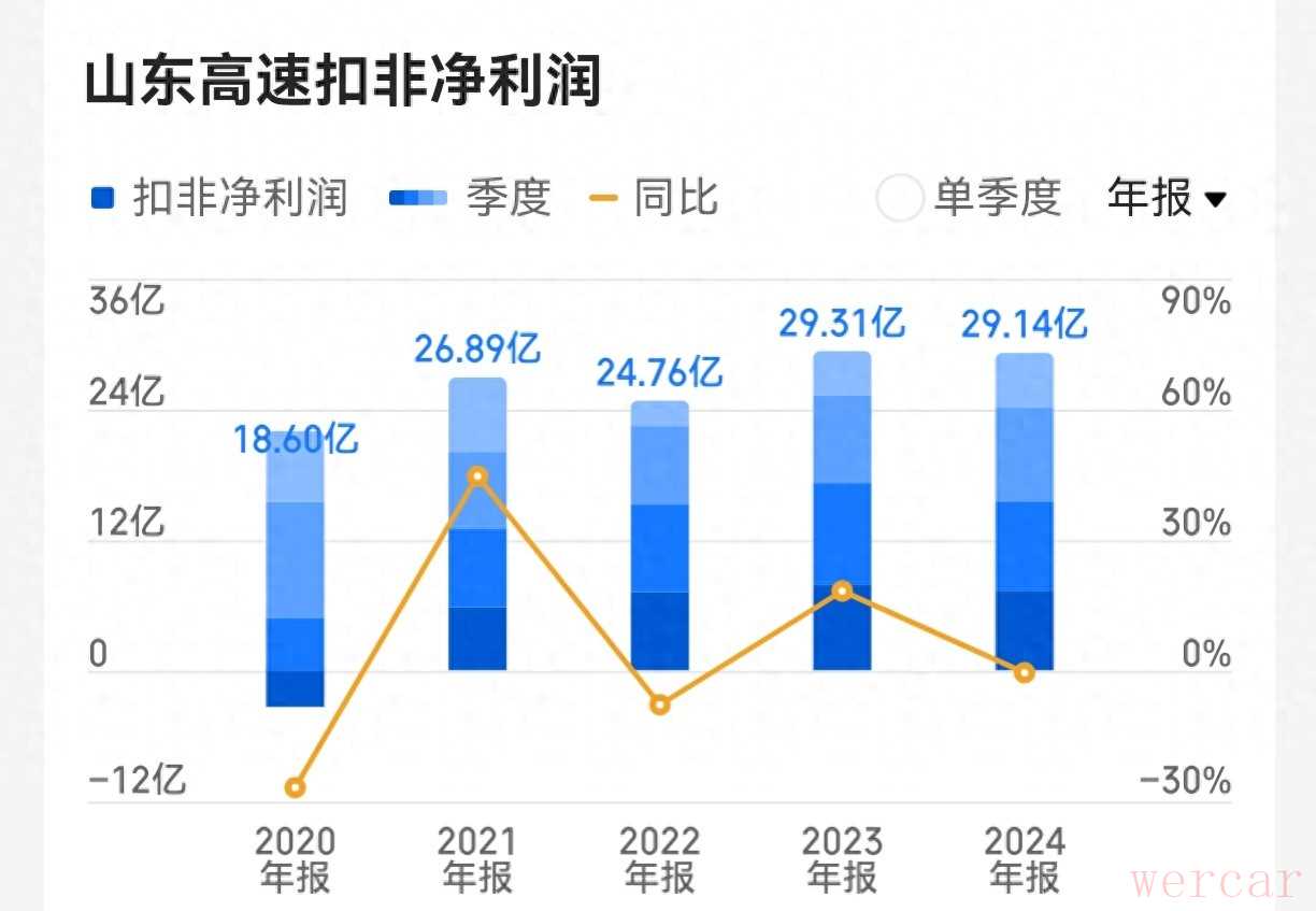 先看看净利润。2020至2024连续五年扣非净利润分别为18.60亿元、26.89亿元、24.76亿元、29.31亿元、29.14亿元。