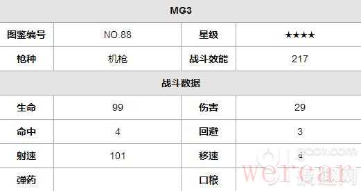 少女前线MG3好不好?MG3怎么样?小编为大家带来少女前线MG3图鉴,下面我们就一起来看看MG3属性吧。