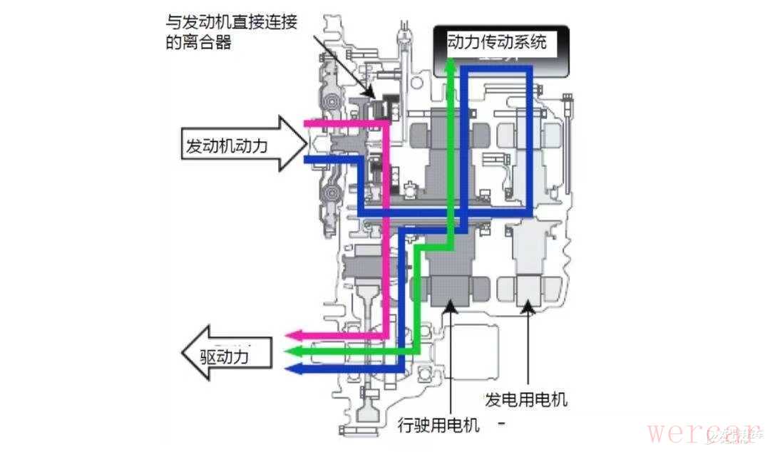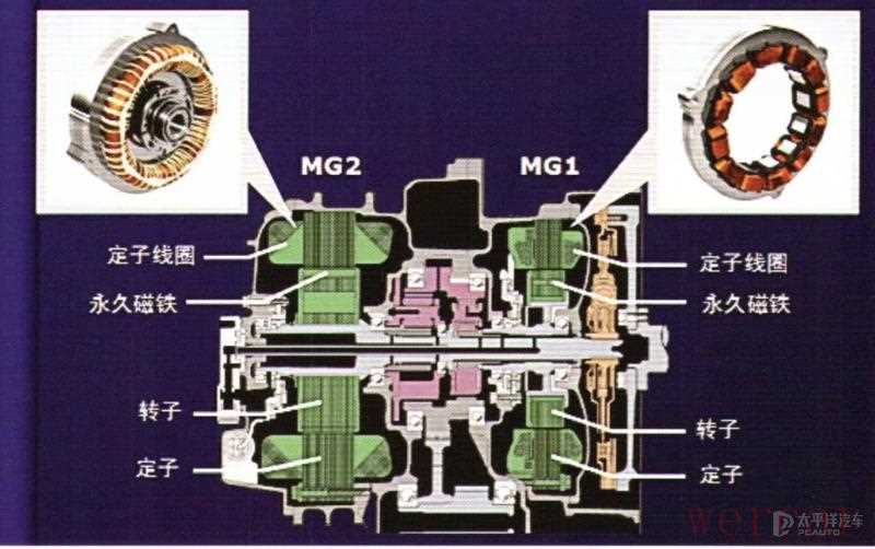 先说说丰田,丰田的双擎技术是利用一套行星齿轮组将发动机和电动机结合起来,在较为低速的状态下,使用纯电驱动,而当需要更高的动力时,发动机便会介入,与电动机一起输出驱动力,同时还可以给电池进行充电。结合电机低速省,发动机高速省的优点,最终达到在任何工况下都可以达到最低能耗的结果。当然,你也可以选择纯电模式,但是由于电池较小,所以续航里程很短。