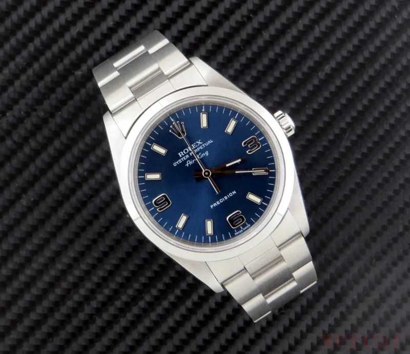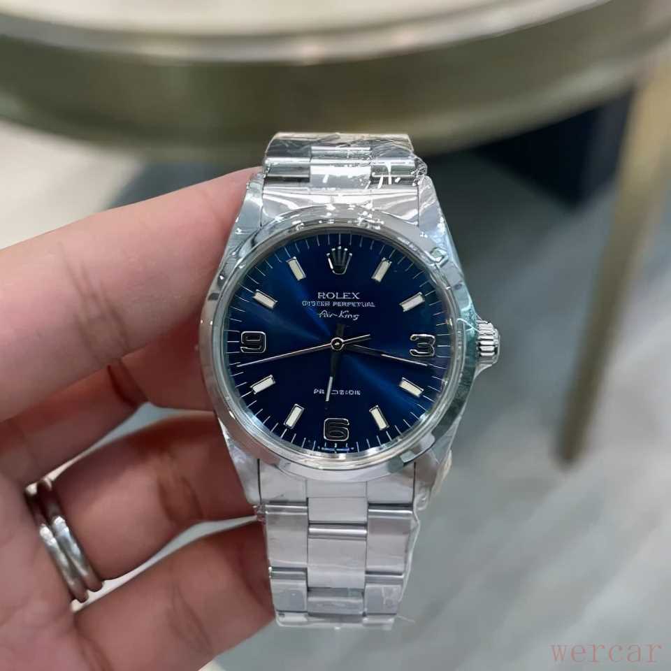 ●首先还是看看劳力士这款空霸型,相比白色款空霸,这款空霸采用蓝色表盘并以放射纹点缀,作为正装表百搭耐看,更具绅士气质。