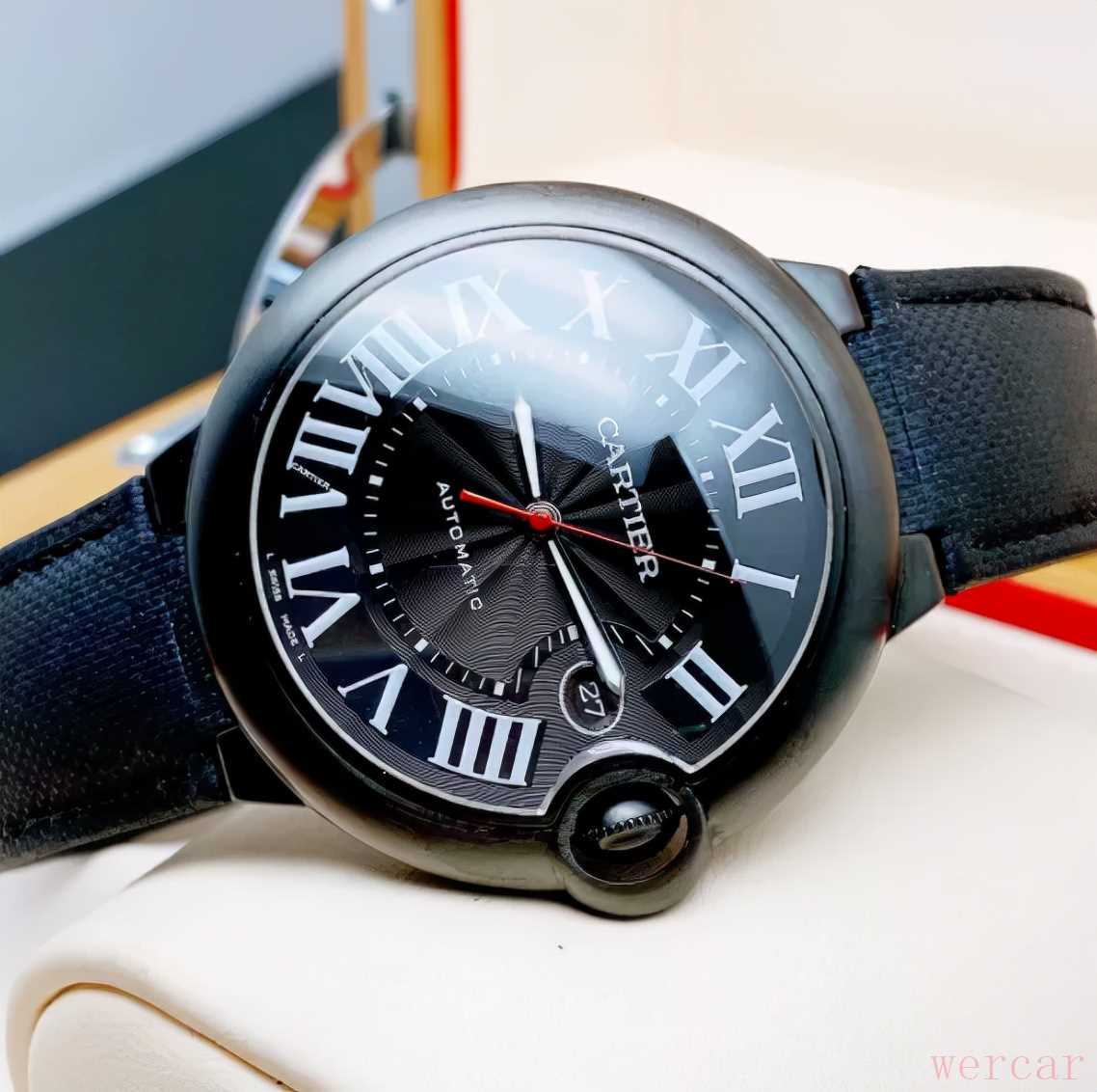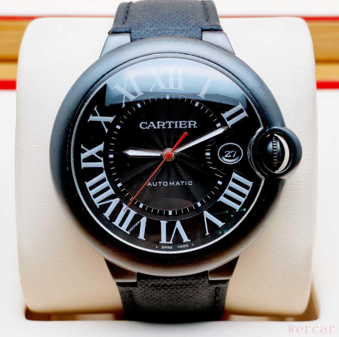●蓝气球看多了,黑气球了解一下。42mm黑色表盘,白色罗马数字时标,剑形指针饰以红色秒针!采用ADLC碳镀层工艺,蓝宝石镜面通透圆润。