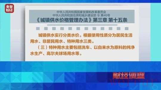 依据中华人民共和国国家发展和改革委员会、中华人民共和国住房和城乡建设部令第46号《城镇供水价格管理办法》第三章第十五条规定:城镇供水实行分类水价。根据使用性质分为居民生活用水、非居民用水、特种用水三类。特种用水主要包括洗车、以自来水为原料的纯净水生产、高尔夫球场用水等。