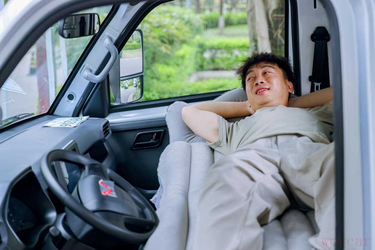 五菱龙卡还有一个小细节让我觉得很人性化,那就是车内的座椅是可以向前翻折放倒的,在放倒之后铺上床垫就能当一张单人床来用了。在送货累了的时候,可以在车内睡上一觉休息片刻,这个设计长安跨越者D5是没有的。