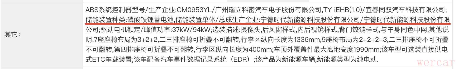 基于本次曝光的最新信息来看,长安跨越星光7/9座版电池容量为43.53千瓦时,CLTC工况续航里程为305公里,整备质量在1640-1750公斤。该车电池类型为磷酸铁锂电池,供应商为宁德时代。动力方面,长安跨越星光7/9座版搭载单电机,最大功率94千瓦,最高车速100公里/小时。