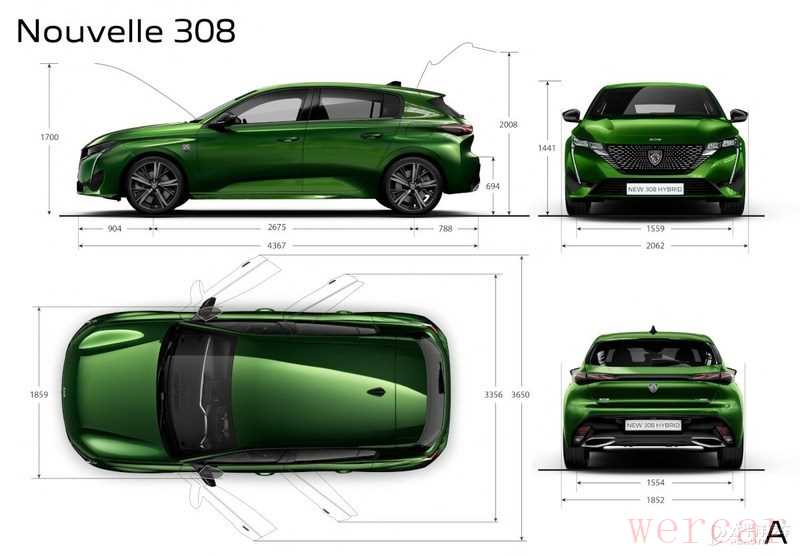 车身尺寸上,全新标致308的长宽高分别为4367/1859/1441mm,轴距为2675mm;对比现款长度增加了105mm,以此为车内乘客带来了更舒适的空间。