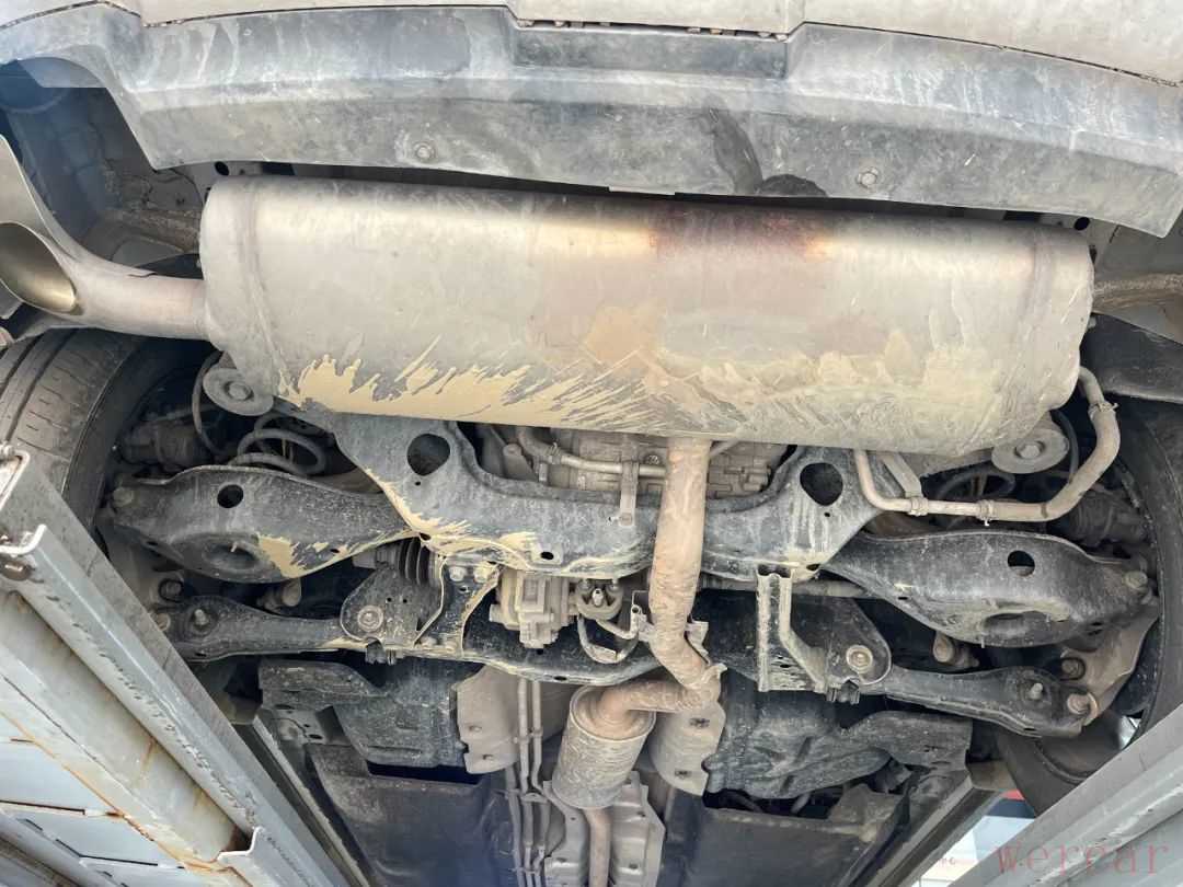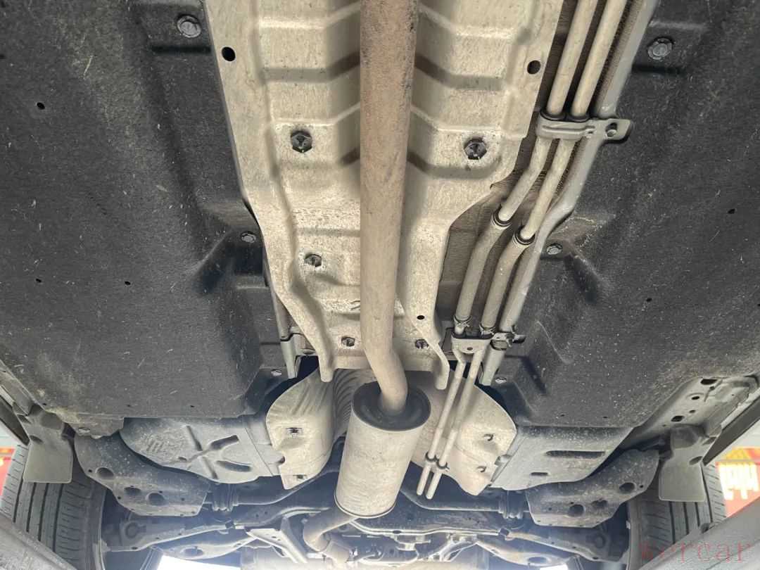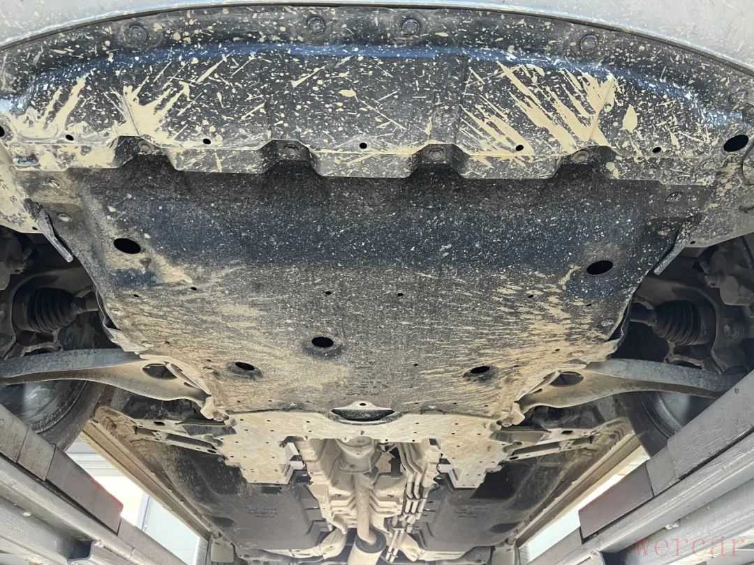 看底盘中部,排气管上部有隔热瓦,两侧是和发动机下护板一样材质的护板。